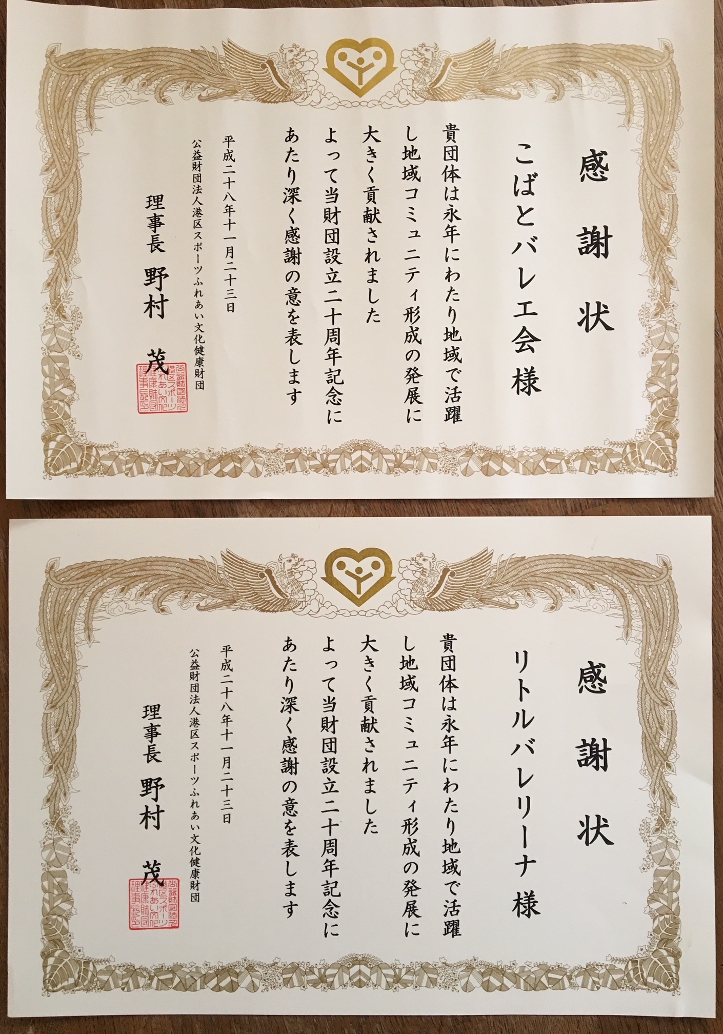 感謝状を頂きました。 公開日:2016年11月24日 最終更新日:2018年02月26日 一般 この記事は最終更新日より1年以上経過しています。 高輪区民センター開設と同時に発足しましたこばとバレエ会の活動に対し、 公益財団法人港区スポーツふれあい文化健康財団様より感謝状をいただきました。 同様にリトルバレリーナも感謝状を頂きました。 これからもバレエを通し、地域コミュニティ形成の発展に努めて参りたいと思います。